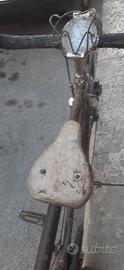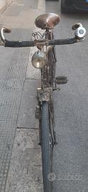 Vendo per liberare spaziobicicletta bacchetta epoca marca bianci TOURING o TEBRO anni 30 conservata con segni del tempo e dell'utilizzo modello molto rato utilizzata da veccho imbianchino. Ruote da 26 balloncino accessoriata con sellino porta bambino in legno e poggiapiedi in ferro battuto, porta giornale e msniglia salta foss, fanale e dinamo radius e oleatori ai mozzi e al movimento centrale, monta copertoni da 26 balloncino.