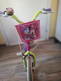 Bicicletta bambina 12 pollici, personaggio Minnie, con rotelle rimovibili e cestino anteriore, in buone condizioni.