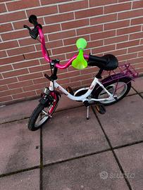 Bicicletta da bambina Vermont con ruote 14”, cavalletta, cestino e rotelline incluse. Ottime condizioni.