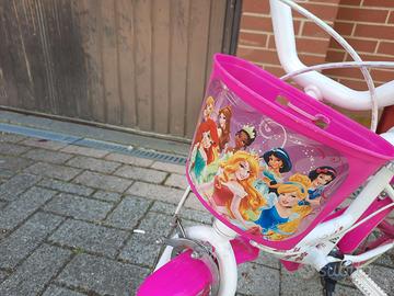 Bicicletta bambina ruota 14". Completa di cavalletto, cestino, parafanghi. Fantasia principesse. Buono stato Consegna a mano su Pisa