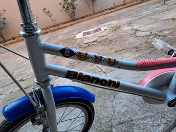 Bicicletta bambina marca BIANCHI Raggio 14'' Colore bianco e rosa con parafanghi blu Ben tenuta