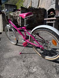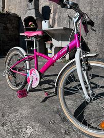 La bicicletta è una B'TWIN Mistigirl 500 da 20 pollici, un modello di Decathlon progettato per bambine dai 6 ai 9 anni (altezza tra 120 e 135 cm