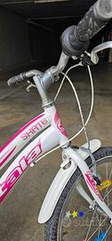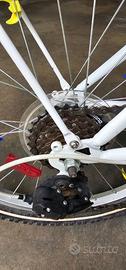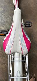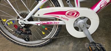 Vendo bicicletta da bambina età consigliata 5-9 anni bianca e fucsia. Modello Atala Skate girl 20 pollici con cambio Shimano a 6 marce. Completa di cavalletto, portapacchi, parafango anteriore e posteriore, catarinfrangenti e simpatiche clip sui raggi (staccabili o riconfigurabili a piacimento). Condizioni: La bici è usata, in buone condizioni e meccanicamente perfetta. Esteticamente presenta normali segni di utilizzo, come da foto. Tenuta sempre in garage. Disponibile per visione dal vivo. Solo ritiro a mano, non spedisco. Di seguito le specifiche tecniche: ALTEZZA TELAIO 28 Telaio Hi-Ten Tig 20" Forcella Hi-Ten Tig 20" Serie sterzo Acciaio 1" 1/8 filettata Guarnitura Acciaio 40T, movimento a cartuccia Cambio Shimano Tourney RD-TZ500 6V Comandi Shimano Tourney SL-RS35 RevoShift Freni Alluminio V-brake con modulatore Ruota Libera Shimano Tourney 6V 14-28 Pedali Resina Mozzi Acciaio, 36 fori Cerchi Alluminio 36 fori Attacco manubrio Acciaio Piega manubrio Acciaio, rise 30mm Reggisella Acciaio 25,4mm Sella Atala Bambino con protezioni Coperture 20"x1,75 white line Uno dei due pedali presenta un taglio nella parte plastica, saldabile con colla tipo Attack, che non inficia la pedalata. Prezzo del nuovo sul sito Atala 275€. Vendo a 90 €