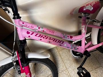 Vendo bellssima bicicletta da bambina con gomme da 20 pollici, marca TORPADO, color Rosa e Bianco, con ammortizzata anteriore TORPADO e cambio shimano 6 rapporti. Utilizzata veramente poco, vendo perché oramai piccola per mia figlia.