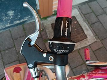 bicicletta bambina, per circa 7- 11 anni, usata poco, taglia gomme 20" (pagata nuova 3 anni fa 200€) ha il cambio posteriore e una borsa affrancata all'anteriore. consegna a mano ✋ ✋
