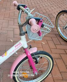 bicicletta bambina raggio 16 a cui si possono applicare rotelle bianco e rosa