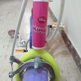 BICICLETTA BAMBINA,DESIGN TEMA MINNIE SUL TELAIO, COLORE PRINCIPALE ROSA, POIS BIANCHI SULLA SELLA,RUOTE 20 POLLICI,MANOPOLE E PEDALI COLORATI,IN DOTAZIONE ANCHE LE DUE ROTELLE