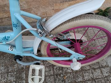 Bicicletta bambina misura 16, cestino rotto come visibile in foto, rotelle si possono montare ma manca la copertura ad una come da foto.