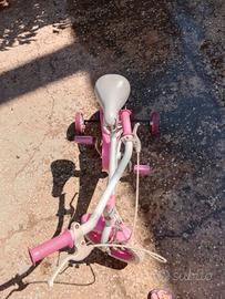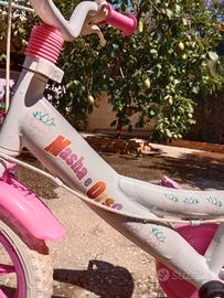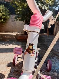 Bicicletta bambina Masha & Orso, rosa e bianca, usata ma in buone condizioni con un po' di ruggine nelle parti metalliche. 2+ anni