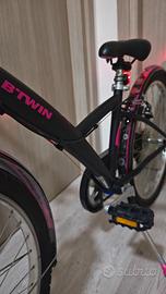 Bellissima bici per bambina btwin misura 24, come nuova, tutto perfettamente funzionante. Adatta per bambina dai 8 ai 11 anni o comunque di altezza da 1,20 a 1,55. La bici è corredata di cambio Shimano con ben 6 marce, luce anteriore e posteriore, come accessori ha il campanello, la cavalletta, ruota anteriore sgancio rapido molto comodo per poterla trasportare in auto, la sella anch'essa con sgancio rapido per poterla regolare velocemente in ogni momento senza bisogno di portare dietro le chiavi a brucola, cerchi in alluminio, catarifrangenti su entrambi le ruote. La bici si trova a Verona città zona Borgo Venezia.