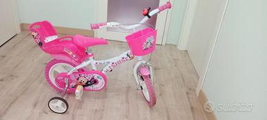 Bicicletta Minnie per bambina da 1 a 4 anni,usata poco,con rotelle e seggiolino per bambole, qualche graffietto ma gli adesivi sono tutti integri.prezzo trattabile