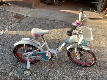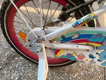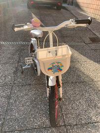 Bicicletta bambina con rotelle. Marca bianchi. Evidenti segni di usura e alcune parti vanno sostituite come visibili in foto