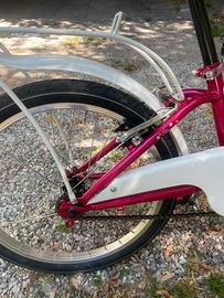 La bicicletta è in ottime condizioni, quasi pai al nuovo, usata pochissimo e tenuta sempre in casa nei periodi di non utilizzo. I pneumatici in ottimo stato. Dotata di cestino e porta pacchi. Colore fucsia. Fornita di campanello. Zona Padova centro.