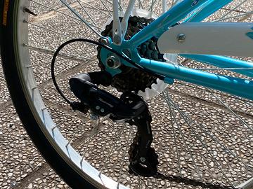 Bicicletta in ottime condizioni, sempre manutenzionata, pronta all’uso. E’ come nuova, cedo per cambio taglia. Cerchi da 24”, cambio a 6 velocità, telaio in alluminio, luci ant/post e portapacchi. E’ una bici di qualità, adatta a bambine o ragazze di altezza fino a 150cm circa. Posso consegnare in zona Gorizia/Monfalcone/Trieste.