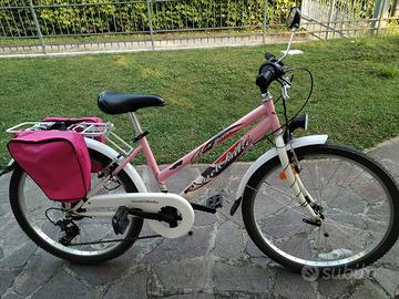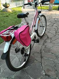 Vendo bicicletta per bambina-ragazza (età dai 9 ai 12 anni), marca NET BIKE, in condizioni ottime, corredata di fanali anteriore e posteriore, contachilometri, specchietto retrovisore e borse laterali. La misura delle ruote è 24x1,75 ed il cambio è Shimano modello RevoShift 6 speed. Non si effettua la spedizione. Formula visto e piaciuto.