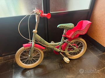 Bicicletta da bambina LOL con seggiolino per bambola dietro al sellino.
