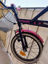 Perfettamente funzionante, bici bambina 3/6 anni, raggio 20', decorata con bei fiori adesivi e impermeabili, cestino incluso.