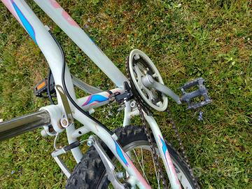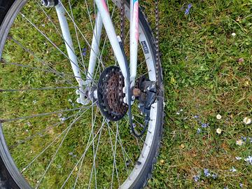 Bicicletta per bambina dagli 8 ai 10 anni. Copertoni in ottime condizioni, una parte di plastica del pedale a destra è leggermente danneggiata, ma sostituibile. NO PERDITEMPO