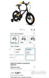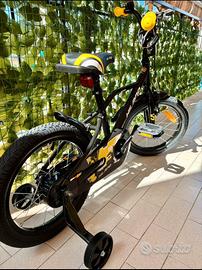 Bicicletta bambini 16 pollici, MAI USATA da come si puo vedere dalle ruote e dalle condizioni della bici che non ha nemmeno un graffio, non e mai stata usata allesterno ma solo provata in casa, vendo per errore di acquisto e non e possobile piu fare il reso..