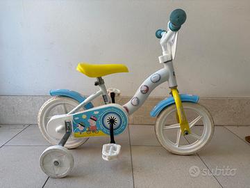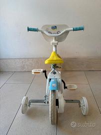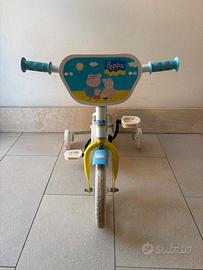 Biciletta 10pollici Peppa Pig Età raccomandata: dai 3 ai 4 anni Telaio e forcella in acciaio, saldatura TIG Ruote in composito Gomme EVA Pignone fisso posteriore Stabilizzatori in dotazione Diametro ruota 250m/m Statura raccomandata 78/90 cm