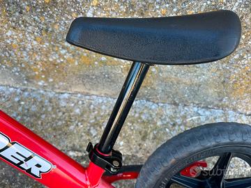 Bici senza pedali per bambini con manubrio e sedile regolabile, ruote di gomma piene.