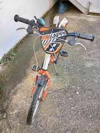 🚲 BICI BAMBINO KAPPA 14"– fino a 8 anni Vendo bici per bambino marca Kappa, adatta fino a circa 8 anni. Condizioni ottime: perfettamente funzionante, freni e pedali ok, nessun danno strutturale. Presenta solo la normale sporcizia da utilizzo, una bella pulita e torna come nuova. Dotata di: ✅ Parafanghi ✅ Cavalletto ✅ Campanello ✅ Sellino originale Kappa ✅ Manubrio con protezione 💶 Prezzo: 20€ – non trattabile - vistone piaciuto 🤝 Solo ritiro a mano (non spedisco)