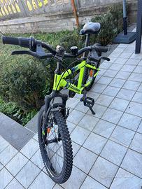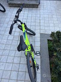 Mountain bike (MTB) Rockrider 20" ST 500 di colore giallo fluo.