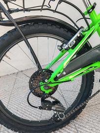 Vendo Bicicletta Bambino 20 pollici Street Gang Urban side Vela marche,6 marce,corona singola,manopole nuove, cambio posteriore Shimano sis comandato da manopole rotative shimano revoschift, pneumatici e copertoni nuovi,greni nuovi,unico piccolo difetto,un piccolo strappo sul sellino. Consegna in provncia e non a partire da 10 euro
