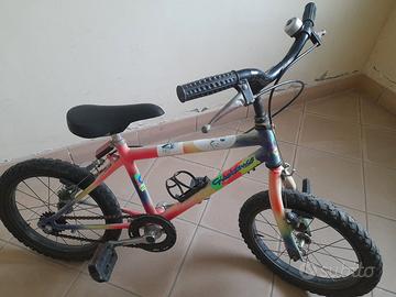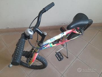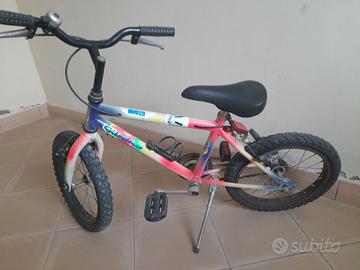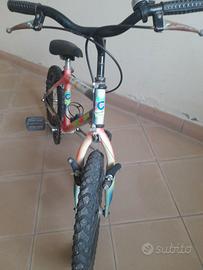 Bicicletta per bambino marca Girardengo corredata di copertoni da sterrato su cerchioni da 16 pollici, campanello, cavalletto e porta-borraccia.