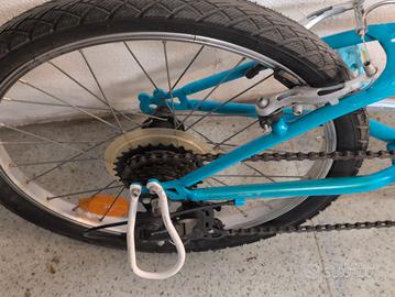 La B-TWIN Original 120 con ruote da 20 pollici è una bicicletta da trekking per bambini da 6 a 9 anni (altezza 120-135 cm) pensata per un uso quotidiano su strade e sentieri. È dotata di 6 velocità per affrontare anche salite e freni V-Brakes come indicato nel supporto Decathlon. La bici è come nuova, senza ruggine o parti lesionate, sono presenti qualche leggerissimo graffio da utilizzo. La bicicletta è stata usata pochissimo da mio nipote, è visibile e disponibile al ritiro a Roma in zona EUR.