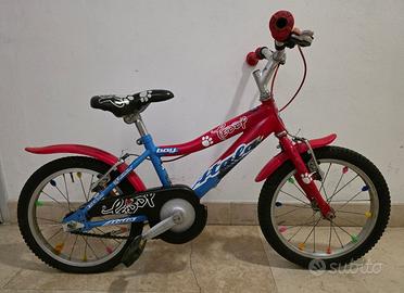 Bicicletta Bambino o Bambina rossa e blu marca Atala modello Teddy Boy con cerchi da 16 adatta dai 5 ai 7 anni circa. Buone condizioni come da foto costo da nuova circa 180 euro vendo per liberare spazio nel box