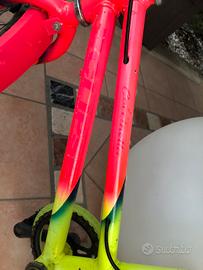 Bicicletta la bambina (colori femminili) usata ma in buone condizioni, cerchi dritti in alluminio, telaio acciaio giallo e rosa , completa di parafanghi cavallettto e campanello. La bici è solida degli anni duemila , Made in italy marca Eclipse .preferibile lo scambio a mano visto peso e dimensioni