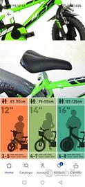 Vendo per inutilizzo Bici Dino Bikes, per bimbo, 12 pollici con rotelle, per bimbi da 2 - 5 anni, color verde e nero, come nuova, utilizzata pochissimo, in ottime condizioni. PAGATA 120 EURO, SVENDO A 70 EURO. Zona Rovereto