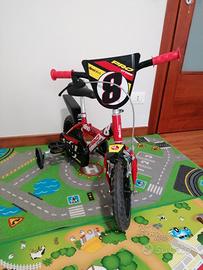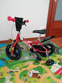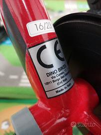 Bicicletta bambino modello Dino Bikes Pro Cross 12. Ruote da 12 pollici, adatta ad un altezza compresa tra 87 e 110 cm. Consigliata per bambini con età compresa dai 3 ai 5 anni. Telaio in acciaio, rotelle stabilizzatrici removibili, sellino regolabile, parafanghi e carter copricatena per la sicurezza. Pneumatici in E.V.A (etilene vinil acetato), antiforatura. Prodotta in Italia.