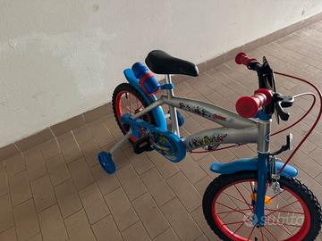 Vendo bicicletta bambino con rotelle. Prezzo non trattabile. Misura 14. Supereroi. Completa di borraccia e porta borraccia. Come nuova