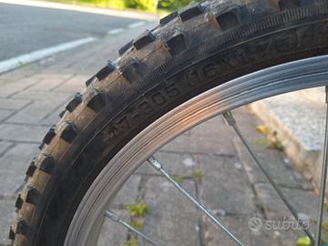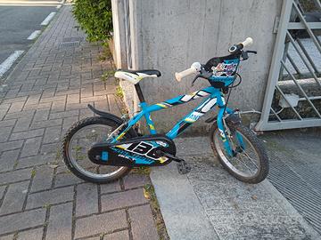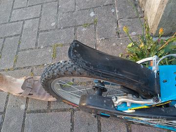 bicicletta azzurra e nera, adatta ad un bambino dai 4 ai 6 anni. c'è un segno sul parafango posteriore come indicato in foto. condizioni buone