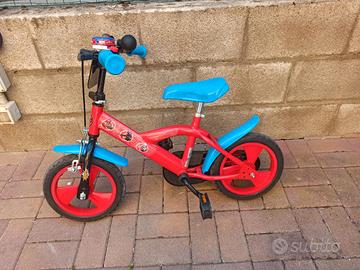 bicicletta da bambino Spiderman con ruotine in dotazione.