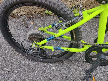 Bicicletta decathlon rockrider 500 st 20" giallo fluo...tenuta benissimo ruote perfette...cavalletto e porta borraccia...ha delle usure sulle manopole come da foto