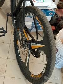 bicicletta mai usata tenuta bene in magazzino forcelle da paura doppio freno a disco. difetti: freni mal funzionanti.