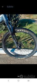 rockshox gomme maxxis tubelessp cerchi a sgancio rapido freni idraulico a disco Shimano contachilometri wireless pompa telescopica sacchetto sottosella con camera d'aria d'emergenza.