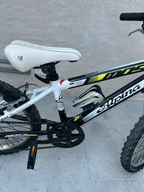 Bicicletta bianca e nera con dettagli verdi per bambino. Ruote da 20 pollici con cambio a 6 velocità. Pagamento solo in contanti, prezzo non trattabile, no perdi tempo.