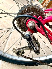 Bicicletta per ragazza Bianchi colore fucsia . Cambio Shimano 5 SIS Grandezza ruota 26 “ Cerchi in lega di alluminio Cavalletto di appoggio