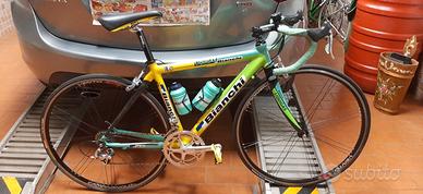Bicicletta da corsa Bianchi, misura M ,serie Pantani, telaio in alluminio e forcella in carbonio,componentistica Campagnolo veloce 10 marce, km percorsi 6000, computer contachilometri, sella al carbonio ultraleggera. ottimo stato, zona colli aniene