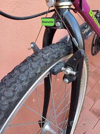 Vendo bici ibrida Bianchi in acciaio, in buono stato, perfettamente funzionante, cambio Shimano 70GS 18 velocità, freni V-brake, diametro ruota 26”, Sella Italia. Copertoni e camere d'aria da cambiare. Visibile a Genova Quinto.