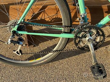 Bianchi freccia celeste montata Shimano, alcuni normali segni di usura, e forcella da rettificare.
