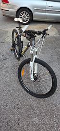 Come da foto vendo bellissima bici Bianchi Kuma 27.3 completa di accessori acquistati a parte: borsetta porta attrezzi, mini pompa portatile attaccata alla bici più una da pavimento, luce posteriore, specchietto, porta borraccia, cavalletto e fermapiedi in metallo. Le manopole sono state acquistate a parte, la sinistra è stata modificata per permettere l'installazione dello specchietto così come si vede in foto. Attualmente monta copertoni da strada sempre acquistati a parte ma possiedo anche quelli da off-road. La bici è in ottime condizioni con alcuni segni di usura e del tempo (faccio foto su richiesta), la canna della sella è stata riverniciata il cambio funziona bene, ha solo bisogno di essere registrato meglio. Le pastiglie del doppio freno sono state cambiate poco prima che smettessi di usarla e sono state usate pochissimo. Per altre informazioni e foto non esitate a scrivere.