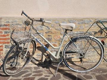 Vendo bici Bianchi originale, colore bianco panna, con cestino anteriore e portapacchi posteriore.