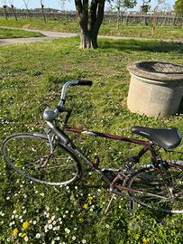 Vendo bicicletta Biemmezeta uomo, produzione italiana, modello vintage. Telaio in acciaio made in Italy con canna alta, colore bordeaux/marsala. Ruote da 28”, portapacchi posteriore presente. Biemmezeta è un marchio storico italiano fondato nella zona di Padova, molto attivo tra gli anni ’70 e ’90, noto per la qualità dei telai in acciaio.[subito] La bici presenta segni di usura e patina da rimessaggio coerenti con l’età — ideale per chi vuole restaurarla e riportarla al suo splendore originale, oppure usarla così com’è per brevi spostamenti. ✅ Telaio in acciaio integro (no ammaccature gravi) ✅ Portapacchi posteriore ✅ Ruote 28” presenti ⚠️ Necessita di revisione generale (freni, catena, lubrificazione) Vendo causa inutilizzo. Possibilità di visionare prima dell’acquisto. Prezzo trattabile.