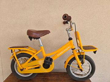 Vendo bicicletta per bambini Supersuper colore giallo, misura 12”, completa di rotelle, freni, portapacchi anteriore e posteriore.