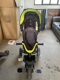 Bicicletta bimbi. È a spinta ,dal manubrio alto, da parte di un genitore ma rimuovendo il pezzo diventa una biciclettina da guidare in autonomia.